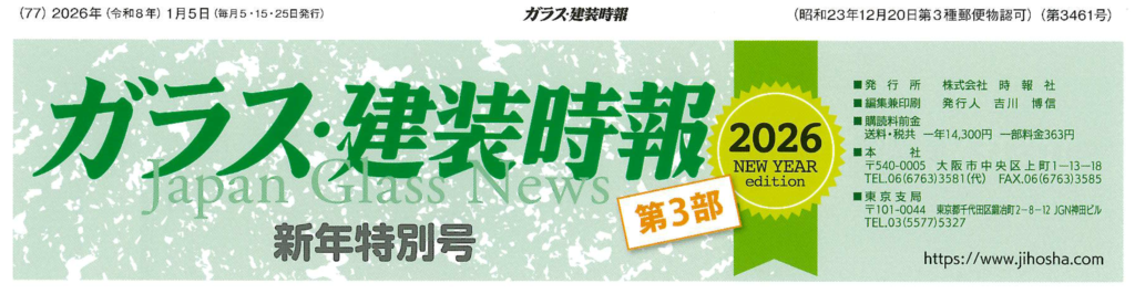 ガラス・建装時報「新年特別号」に当社の関西万博でのプレゼン記事が掲載されました メディア掲載事例 Media メディア掲載事例 2026/01/07 ガラス・建装時報「新年特別号」に当社の関西万博でのプレゼン記事が掲載されました 八尾トーヨー住器株式会社は、メディア出演や広報活動を積極的に行っております。 取材、登壇、インタビューなどのご依頼は、下記お気軽にお問い合わせください。 取材依頼はこちら